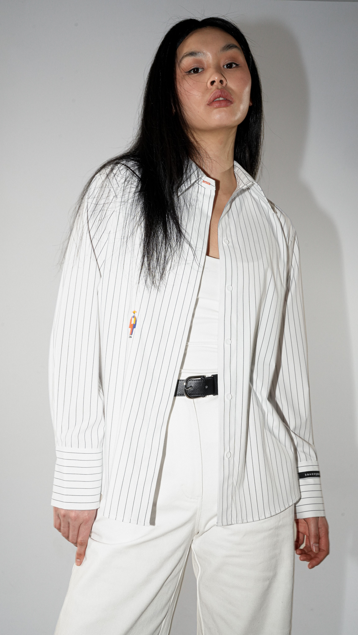Сорочка Stripes біла у сіру смужку 19% бавовна, 76% поліестер, 5% спандекс 1-26-pt-sr-sm L-XL(р)