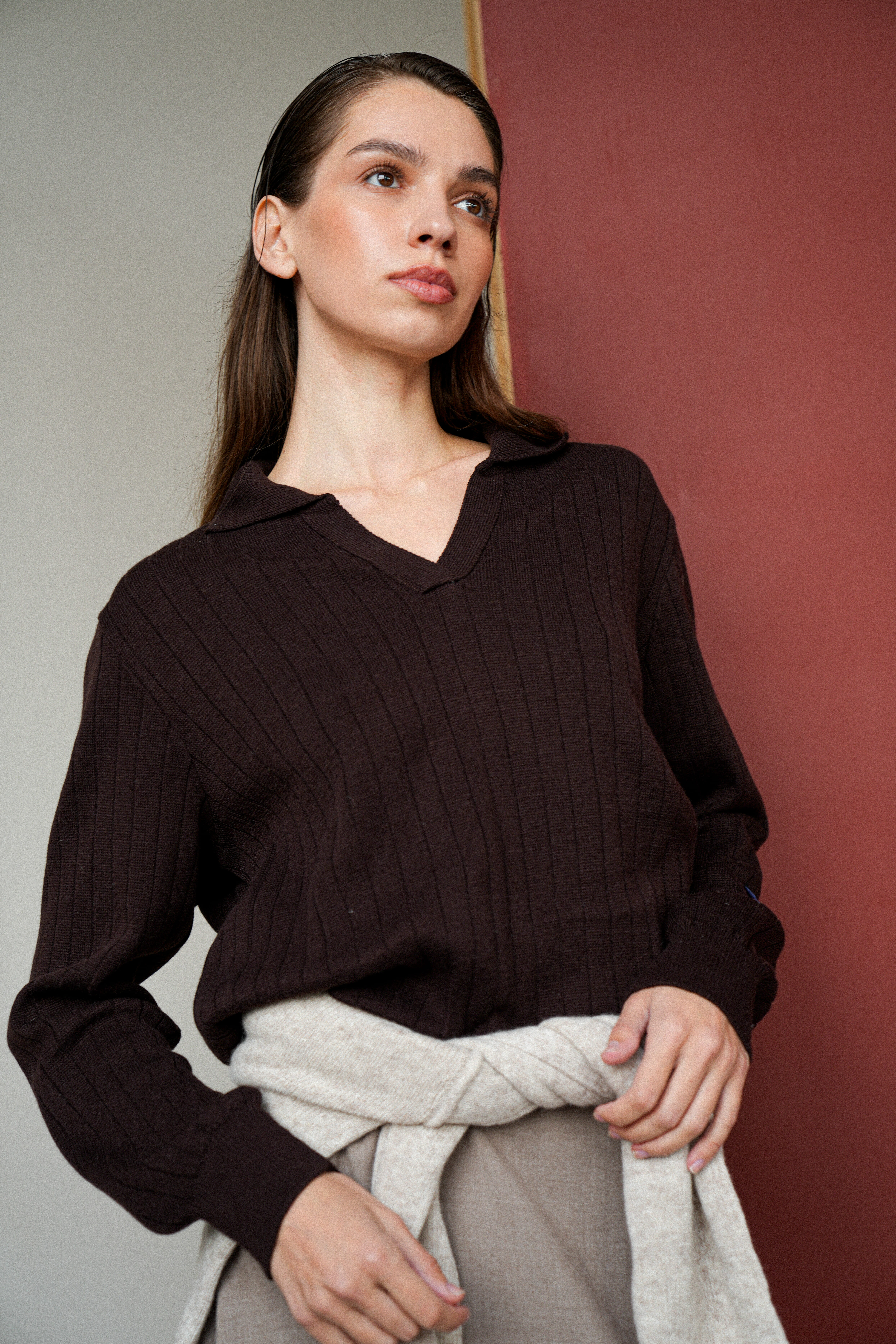 Поло вʼязаний Line Choco шоколадний 50% бавовна, 50% поліестер 2-25-at-pl-chk L-XL(р)