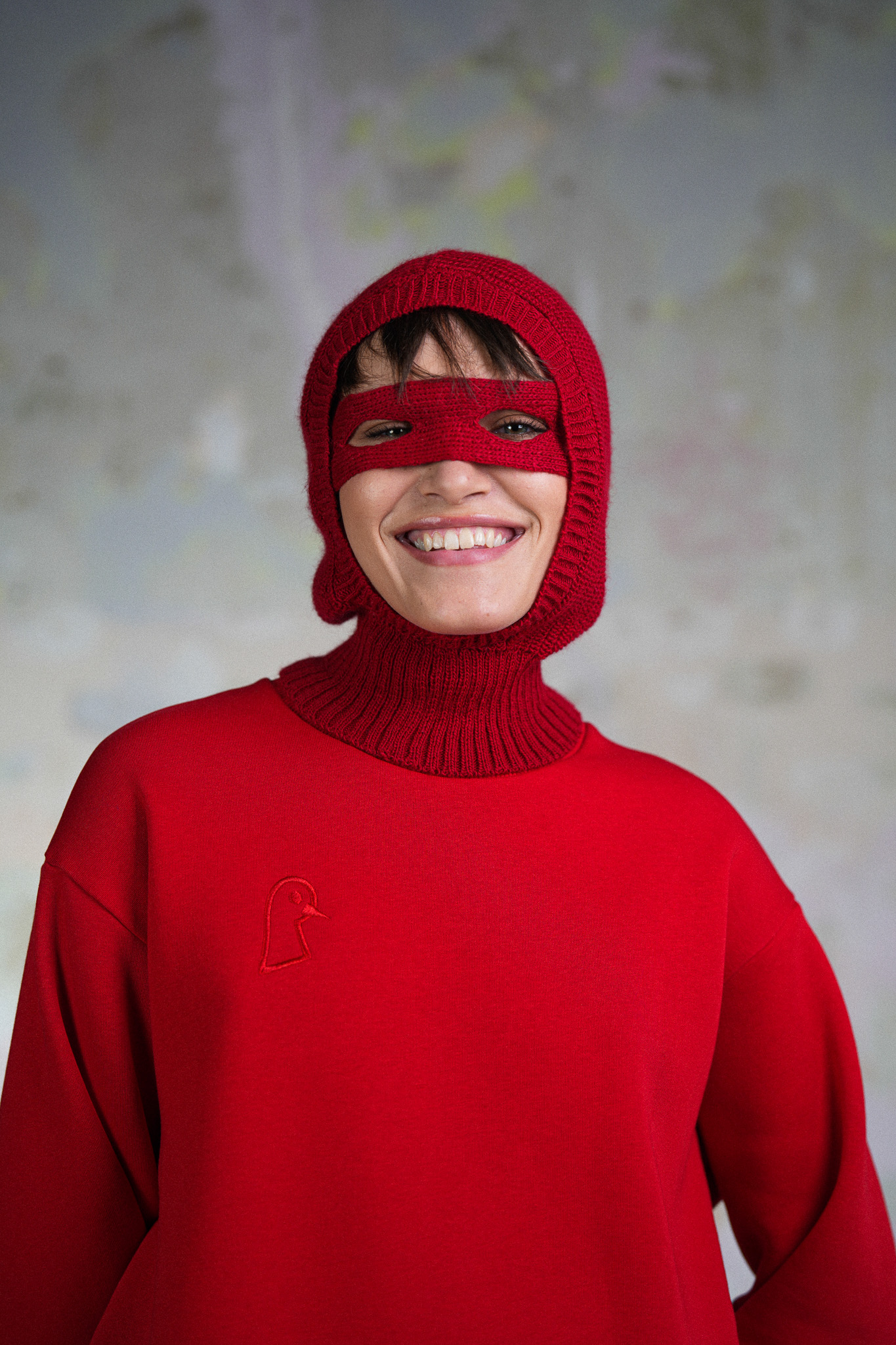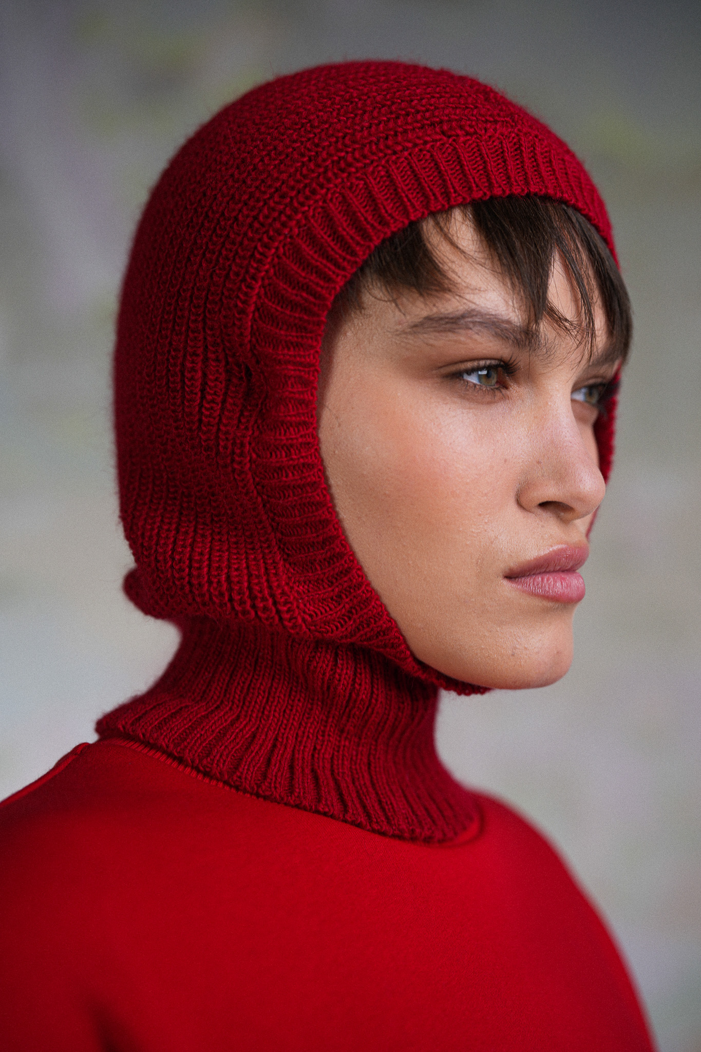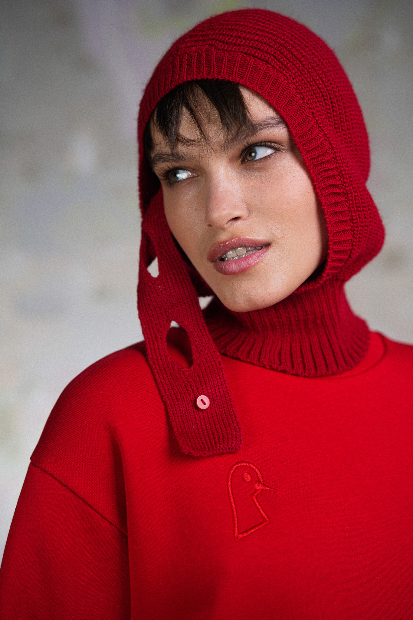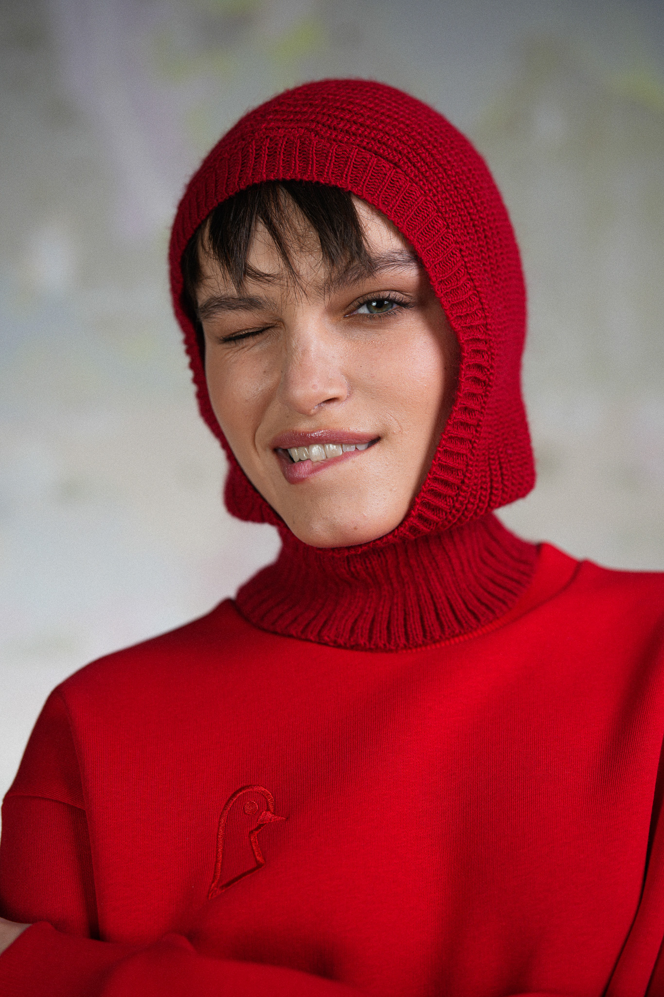 Knitted balaclava in a rich red color — warm, soft, stylish. Perfect for the cold season, designed to attract attention.