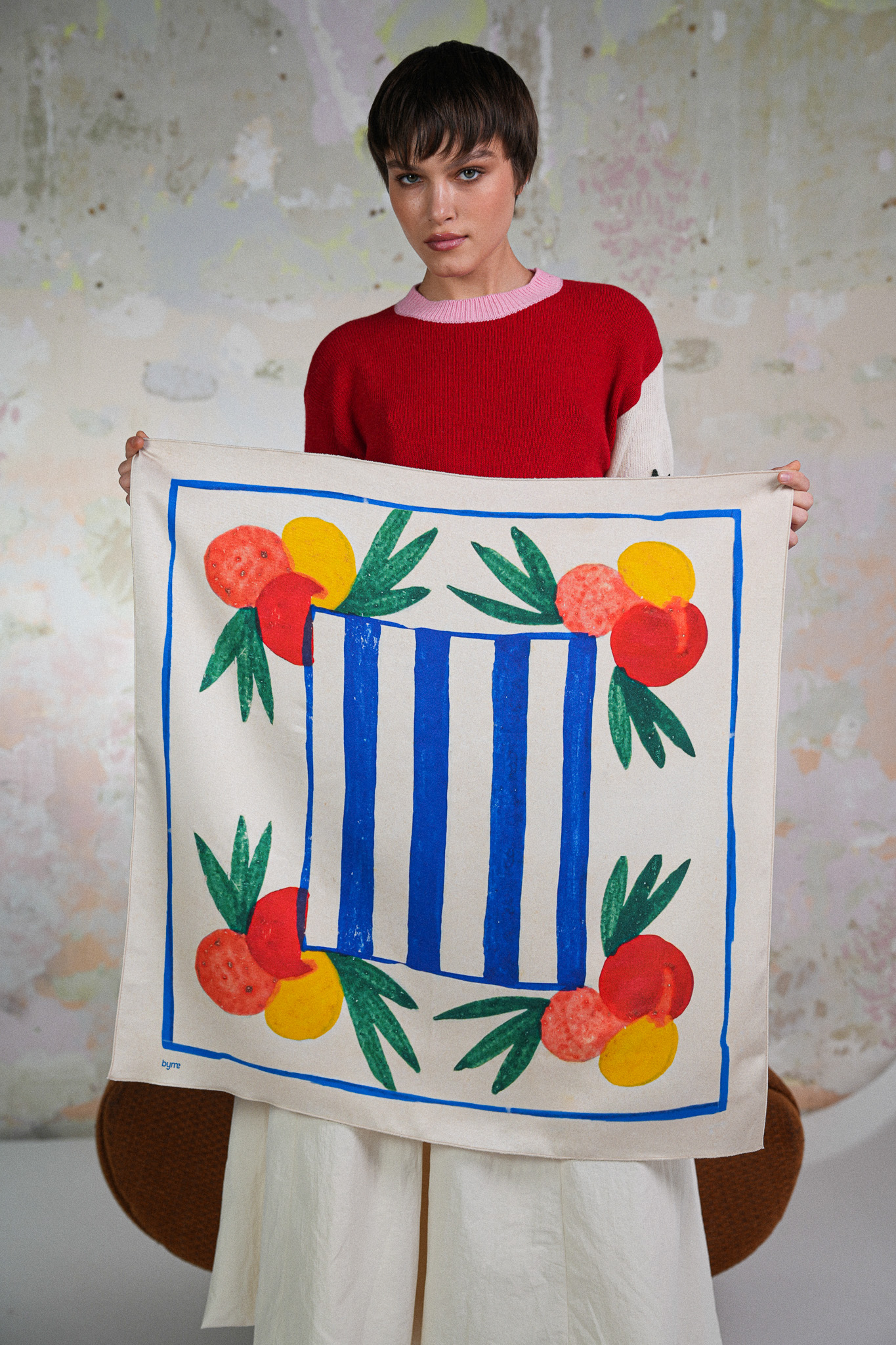 This versatile scarf adds character to any outfit. It can be tied around the head, worn as an accessory around the neck, used to accentuate the waist on jeans, or to decorate a bag. The soft, lightweight, skin-friendly fabric holds its shape, and the color and design create an accent even in a minimalist look. The perfect accessory for those who like to experiment with style.