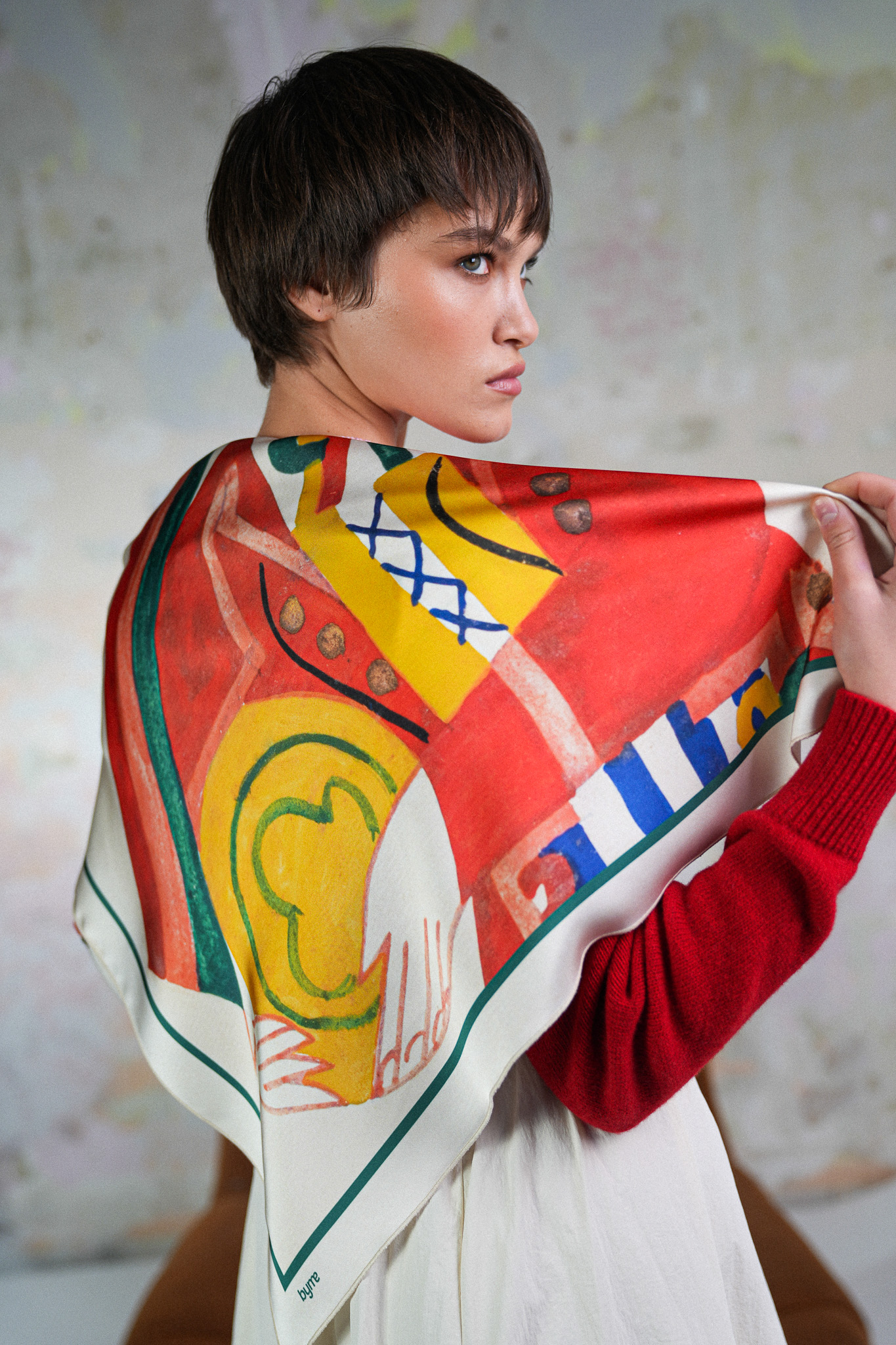 This versatile scarf adds character to any outfit. It can be tied around the head, worn as an accessory around the neck, used to accentuate the waist on jeans, or to decorate a bag. The soft, lightweight, skin-friendly fabric holds its shape, and the color and design create an accent even in a minimalist look. The perfect accessory for those who like to experiment with style.