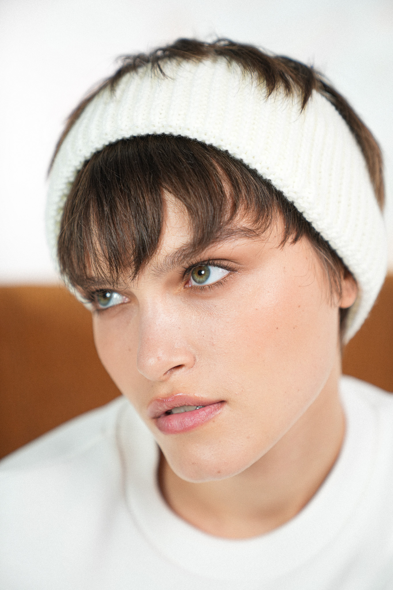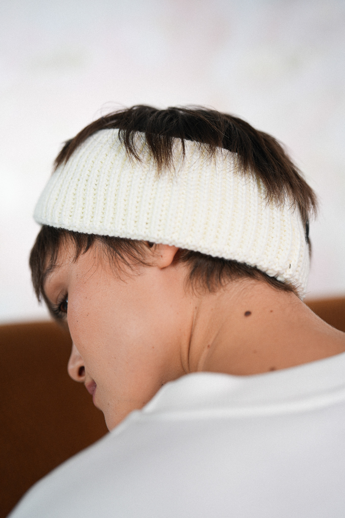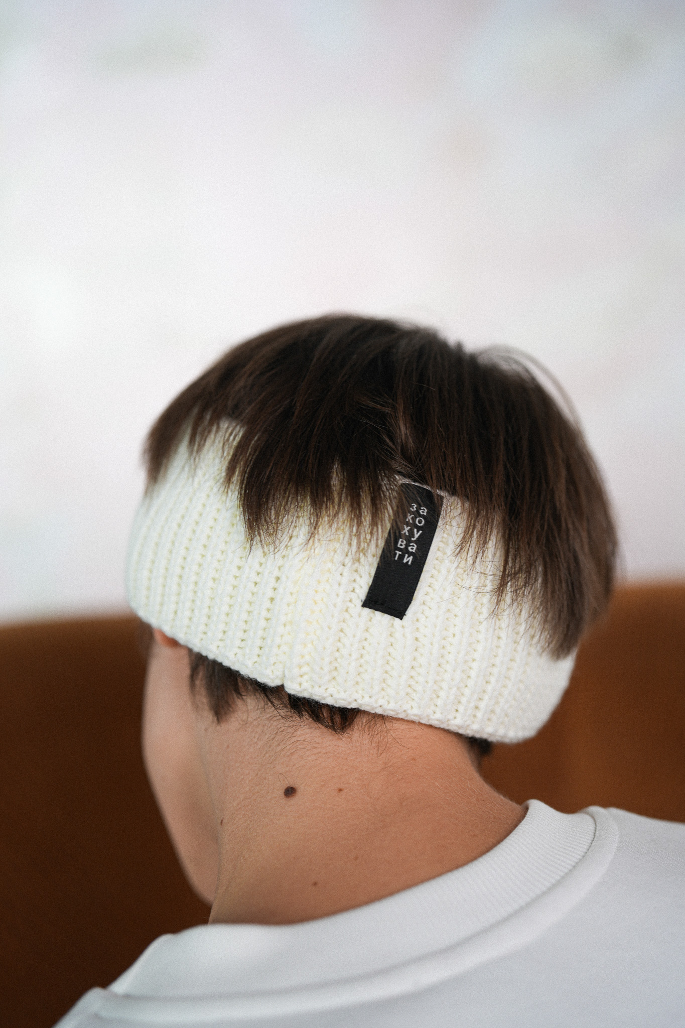 A knitted headband in milk white is a stylish alternative to a hat. Soft, warm, and pleasant to the skin, it protects your ears from the cold and doesn't ruin your hairstyle. It goes perfectly with a coat, down jacket, or sweater in a matching color. Created for those who appreciate minimalism, comfort, and bright accents in their look.