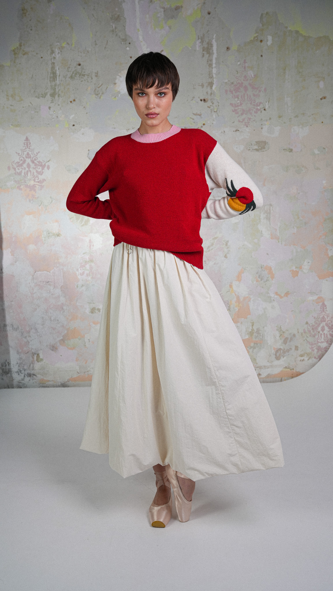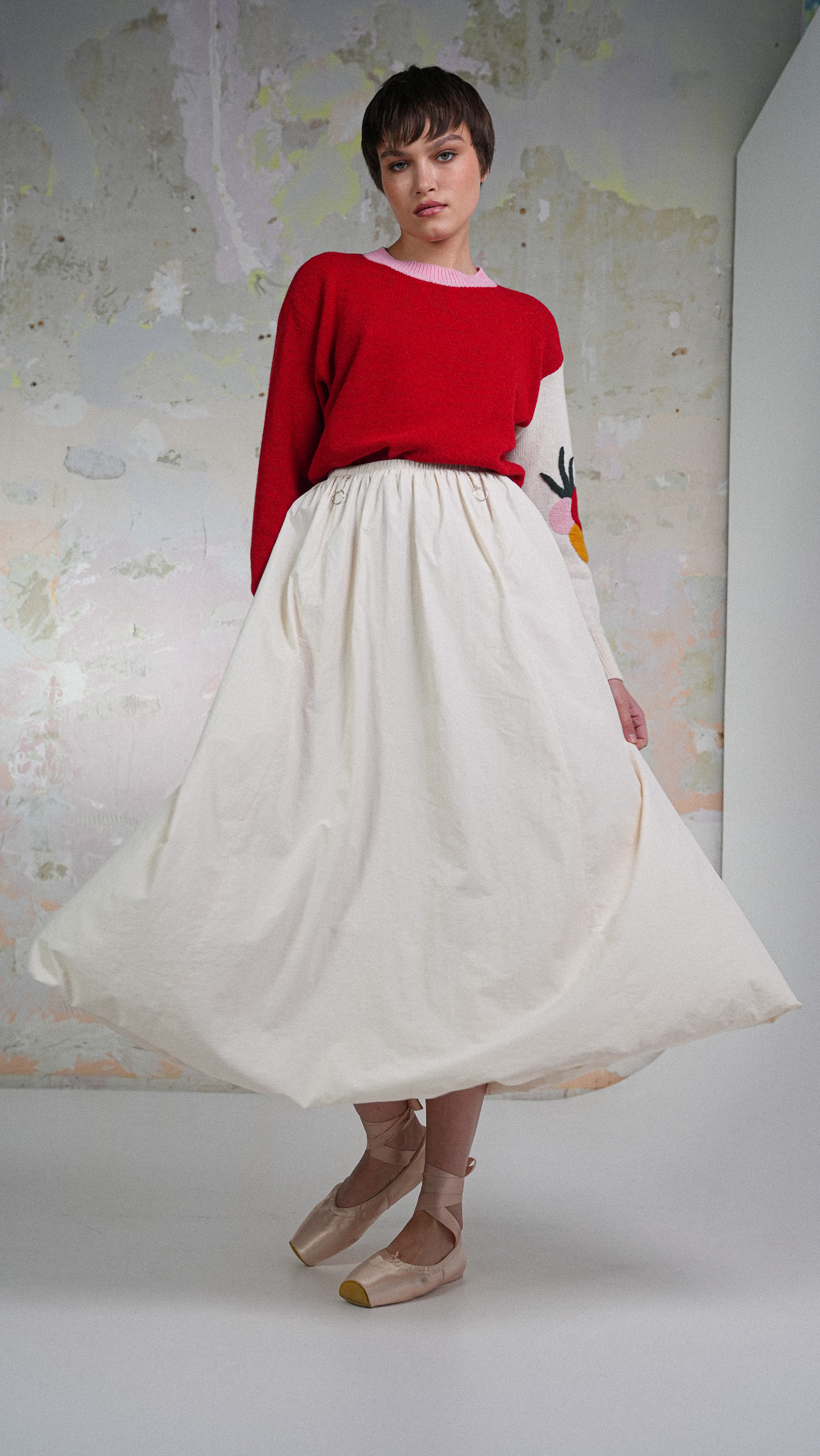 A light pearl-milk skirt — about constant movement and the desire to find balance in the modern rhythm of life.