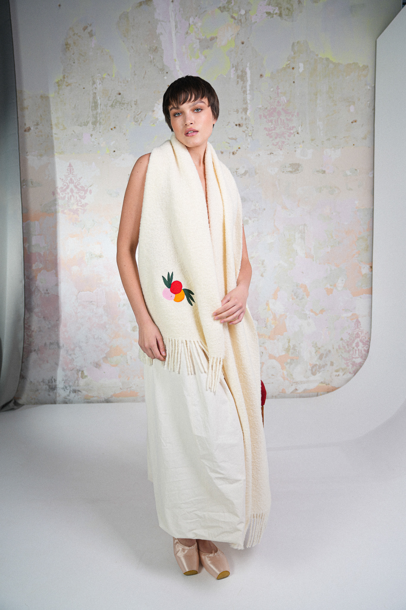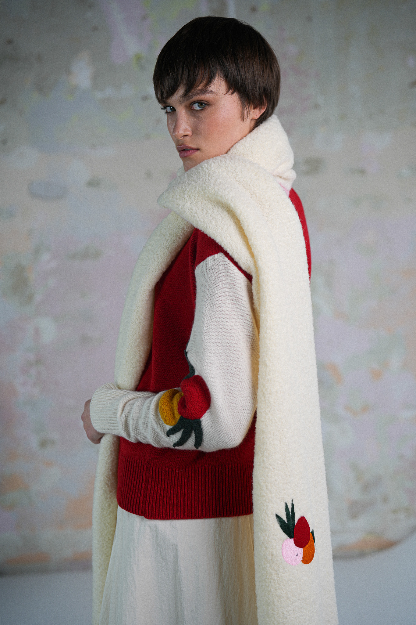 The scarf was inspired by a sketch of Kateryna's costume for the play “The Devil and the Innkeeper.” Anatol Petrytsky created the costumes for the characters in this play.