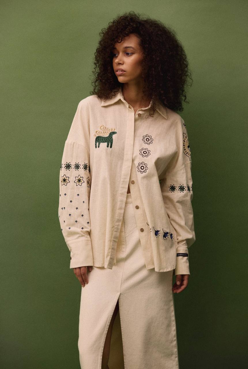 Сорочка вишита "Явора" молочний 30% льон, 70% віскоза 2-24-yv-sr-mlk L-XL(р)