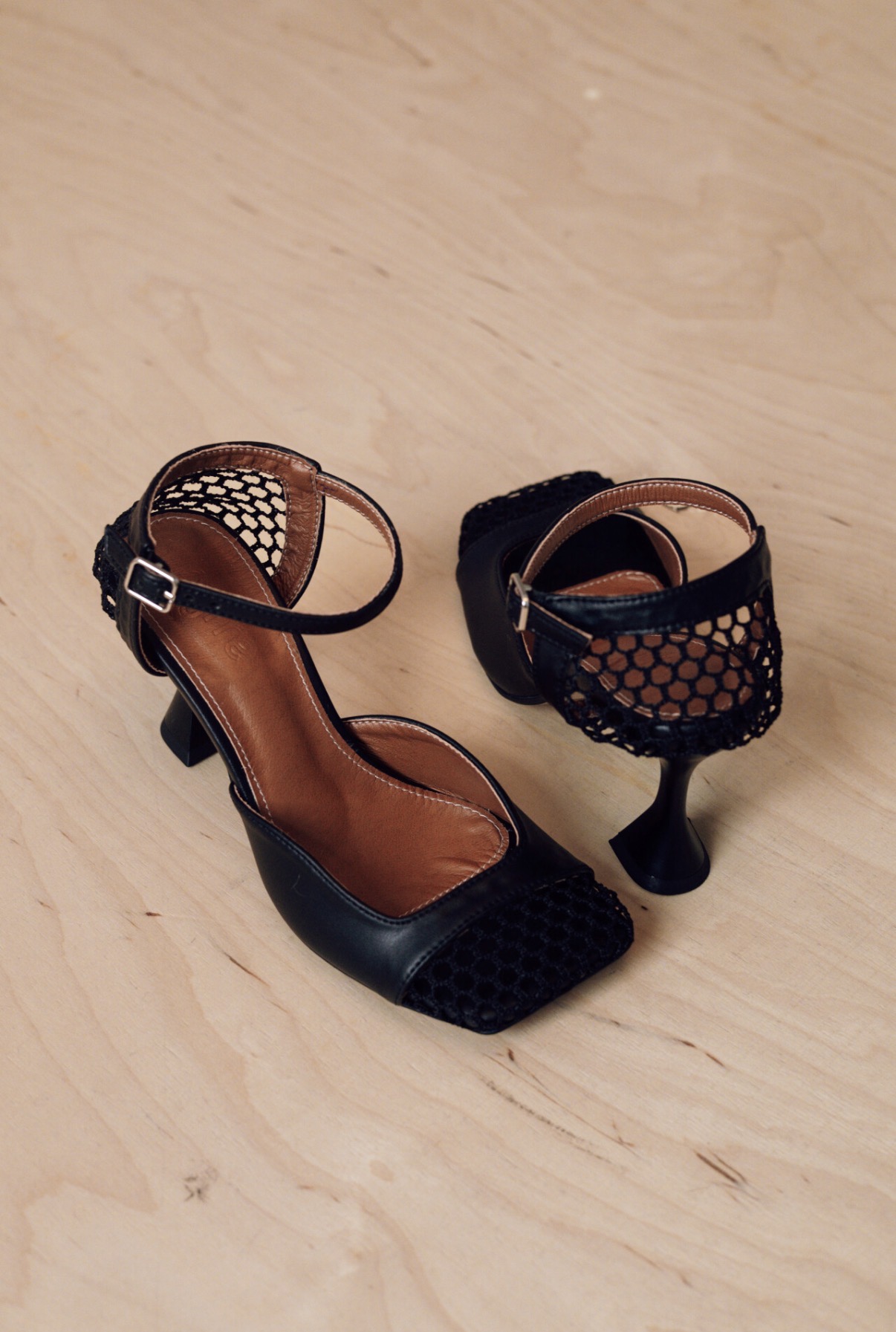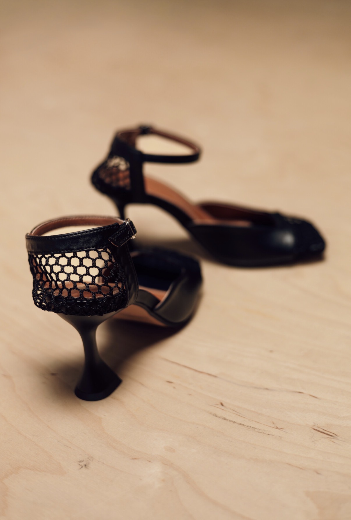 Heeled shoes with mesh.