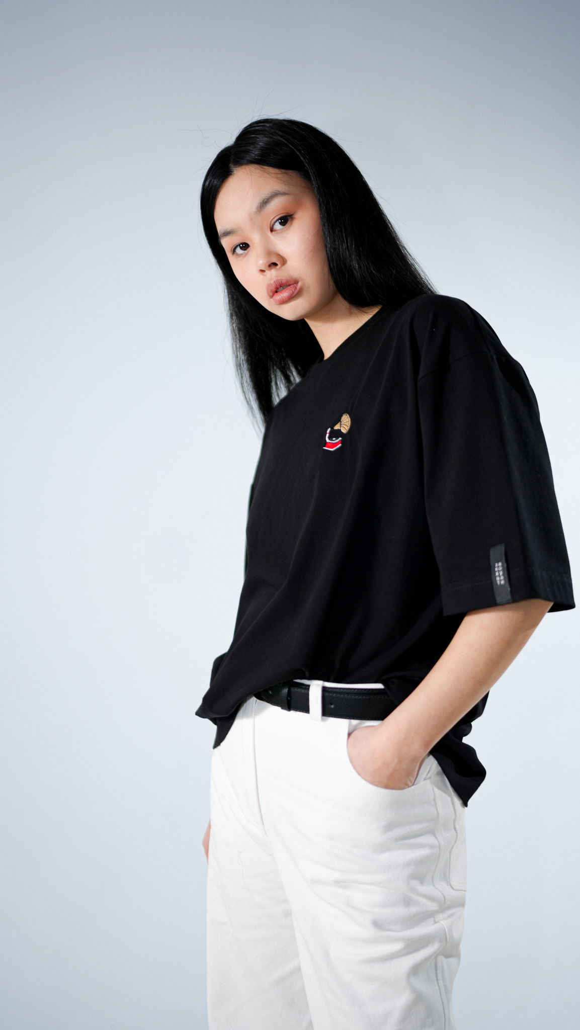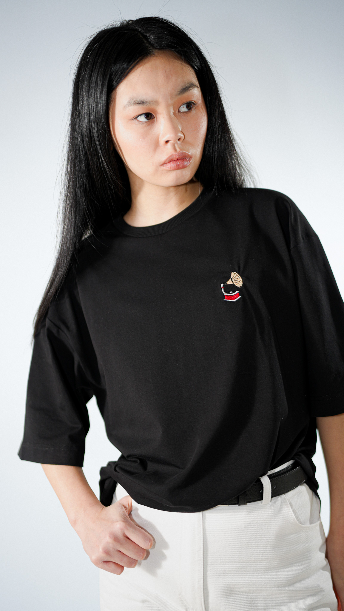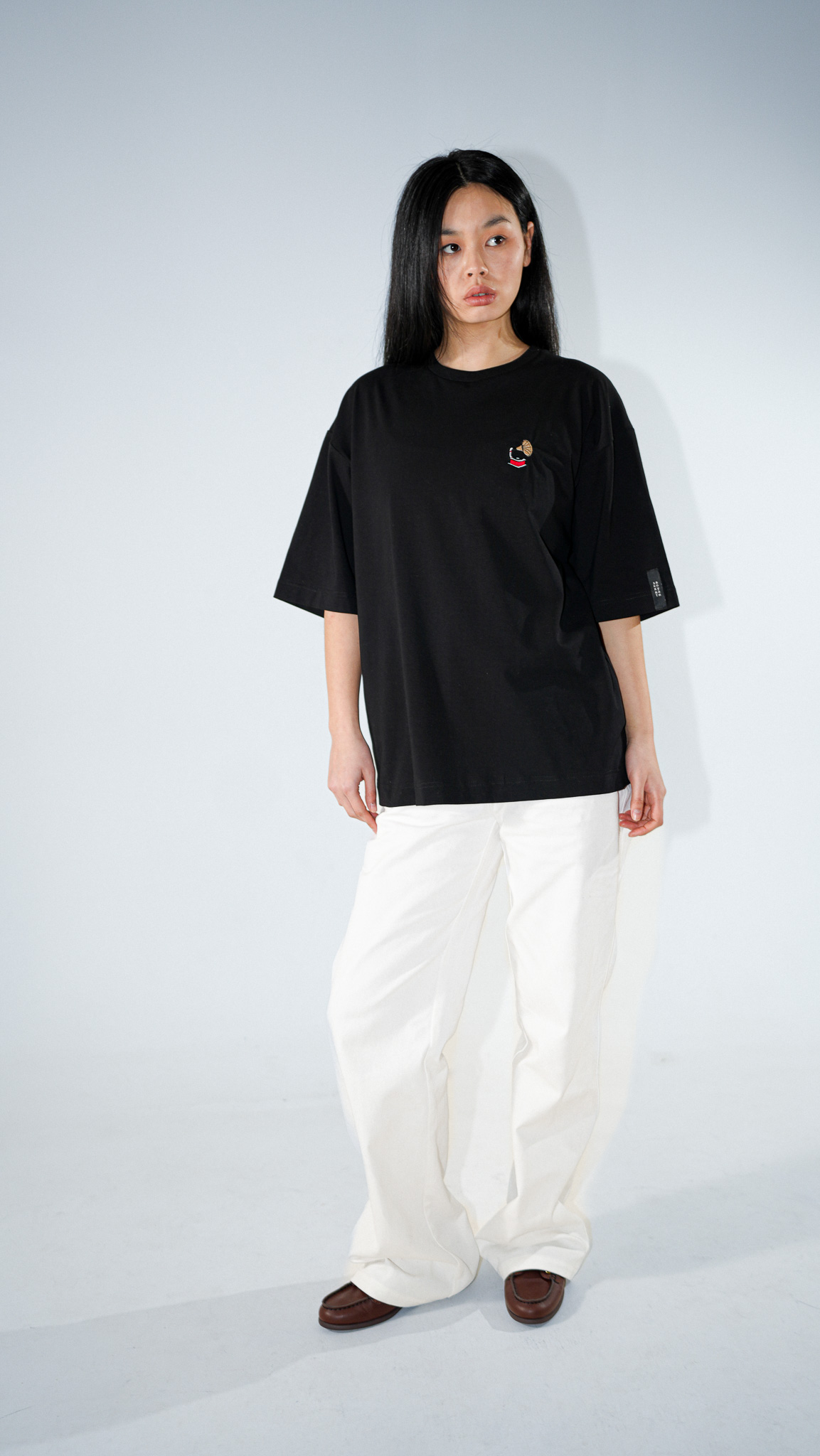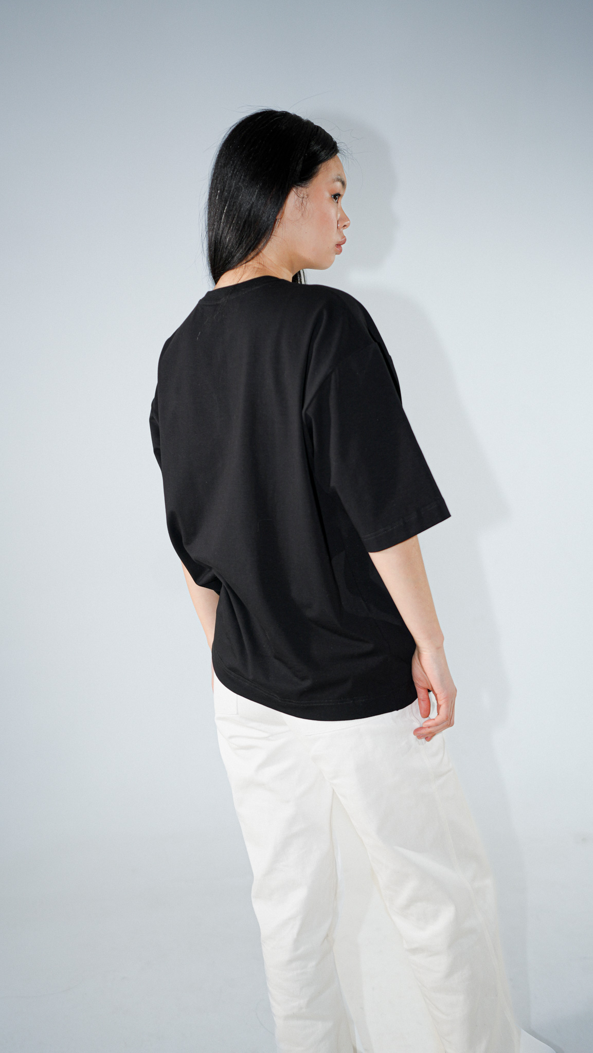 Класична чорна футболка оверсайз — базова річ для сучасного гардероба. Чистий крій і зручна посадка створюють мінімалістичний силует, який легко комбінується з джинсами, спідницями або брюками.