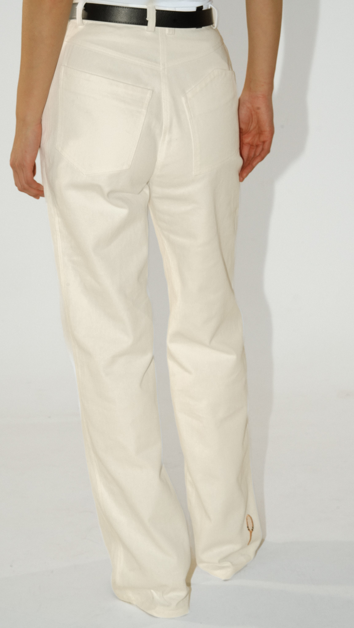 Універсальні джинси молочної барви.