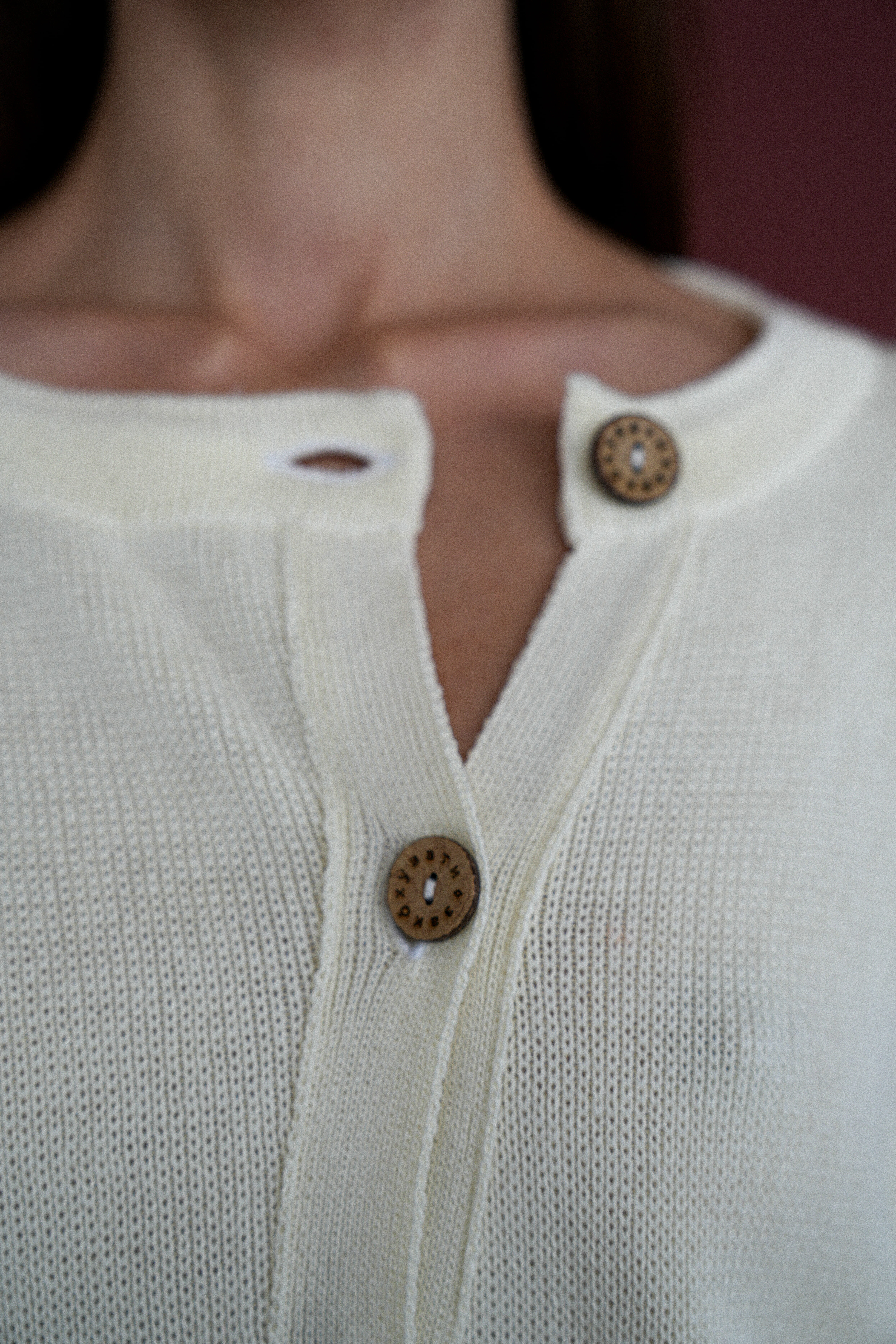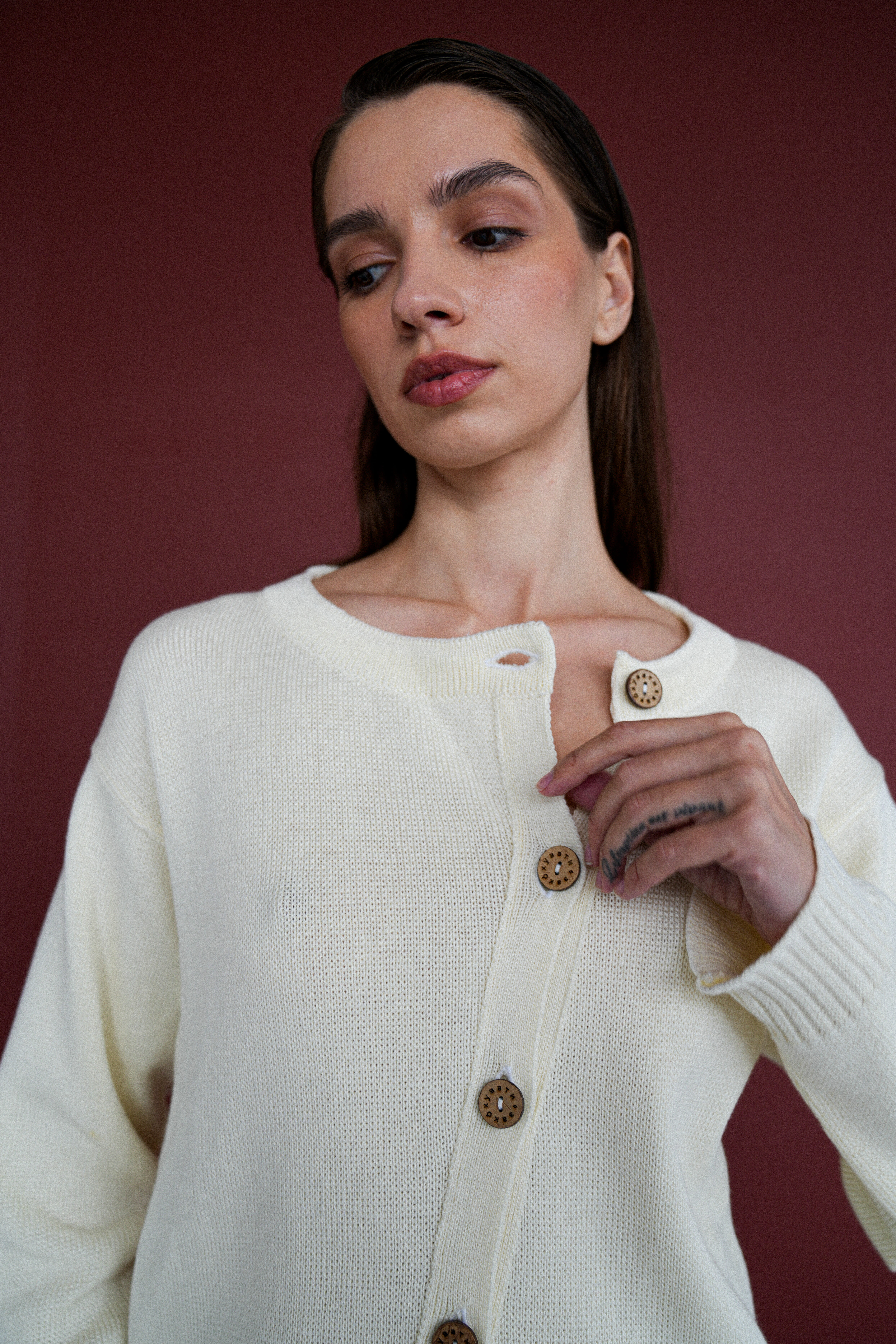 Шукаєте універсальну річ для базового гардеробу? Жіночий кардиган молочного кольору на ґудзиках стане стильним акцентом у будь-якому образі. М’яка приємна до тіла тканина дарує комфорт протягом усього дня, а класичний крій з акуратною застібкою на ґудзики додає елегантності.