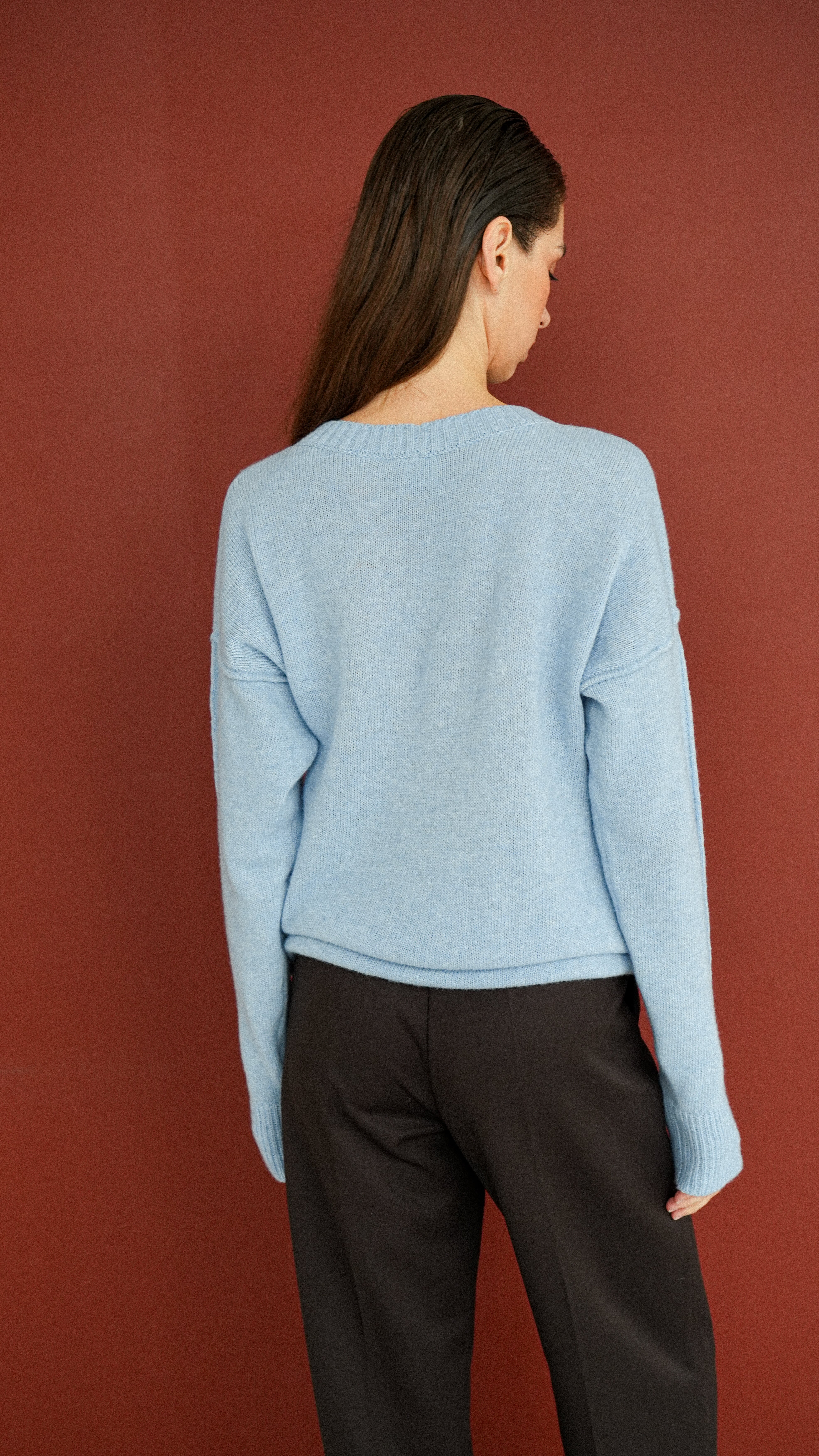 Цей вовняний светр блакитного кольору — ідеальний вибір для тих, хто цінує тепло, комфорт та сучасний стиль.