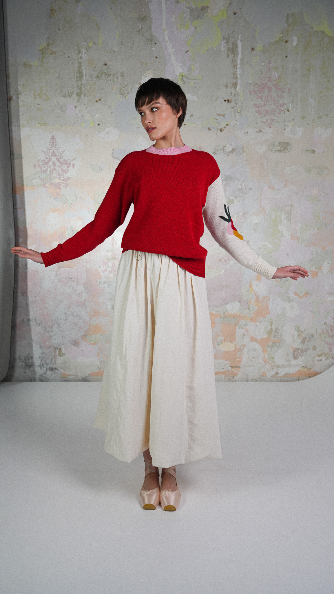 Легка перлинно-молочна спідниця — про постійний рух та бажання вловити баланс у сучасному ритмі життя.